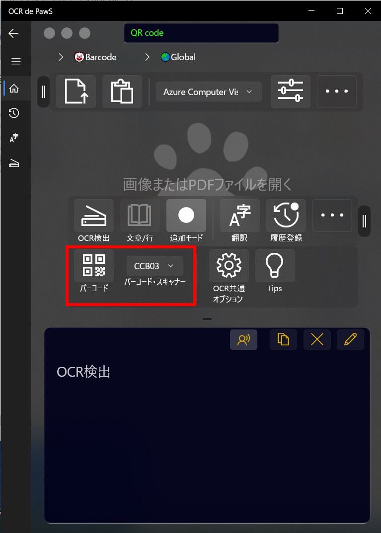 また、OCRと同様な操作で、バーコード画像ファイルやクリップボードからも読み取ることが可能です。