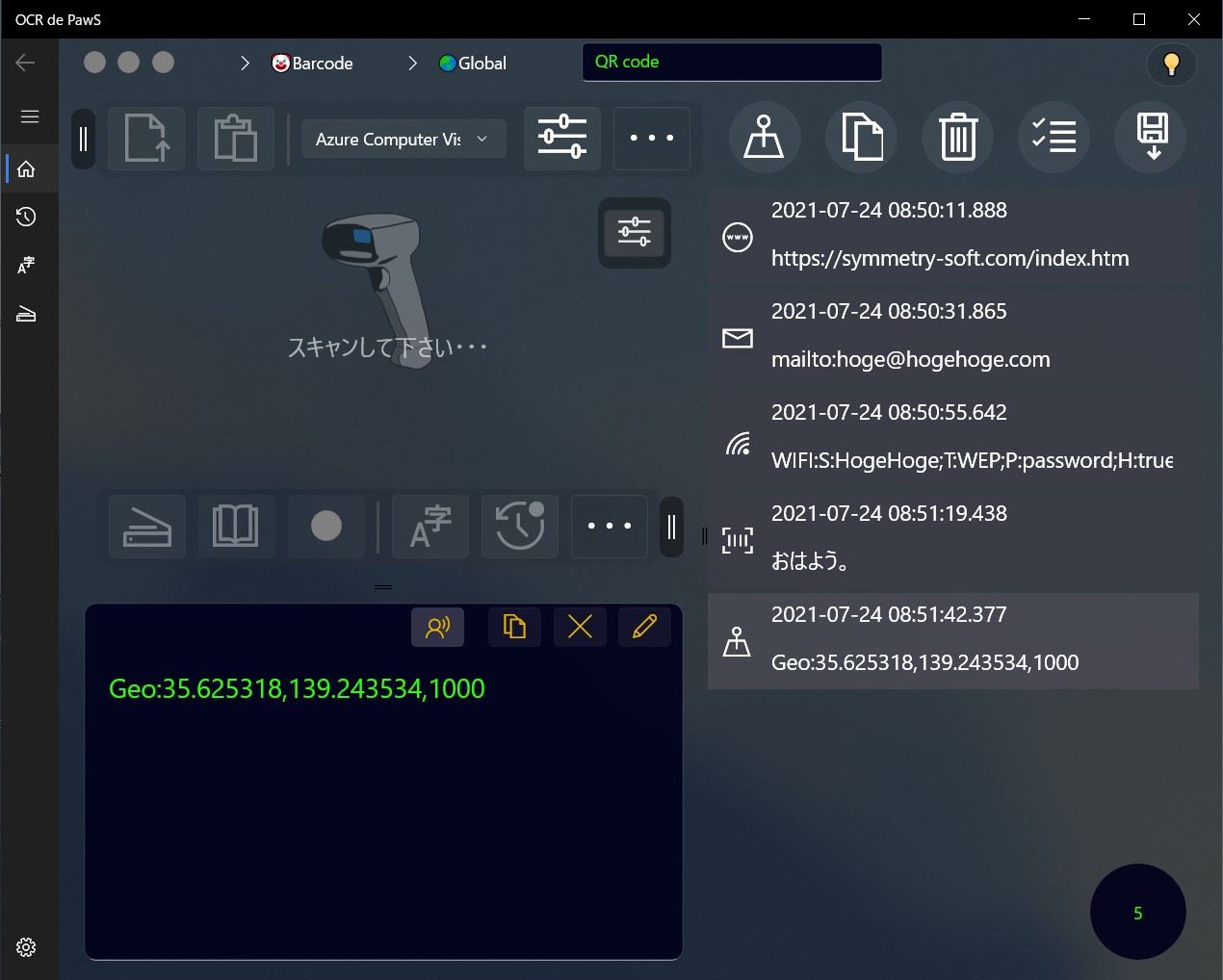 読取りに成功すると、履歴リストに追加されます。